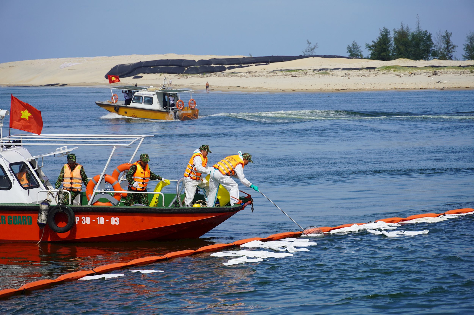N-Fiber Oil Absorbent Pillows at Cat Lai Port, addressing a fuel oil leak from a container.
